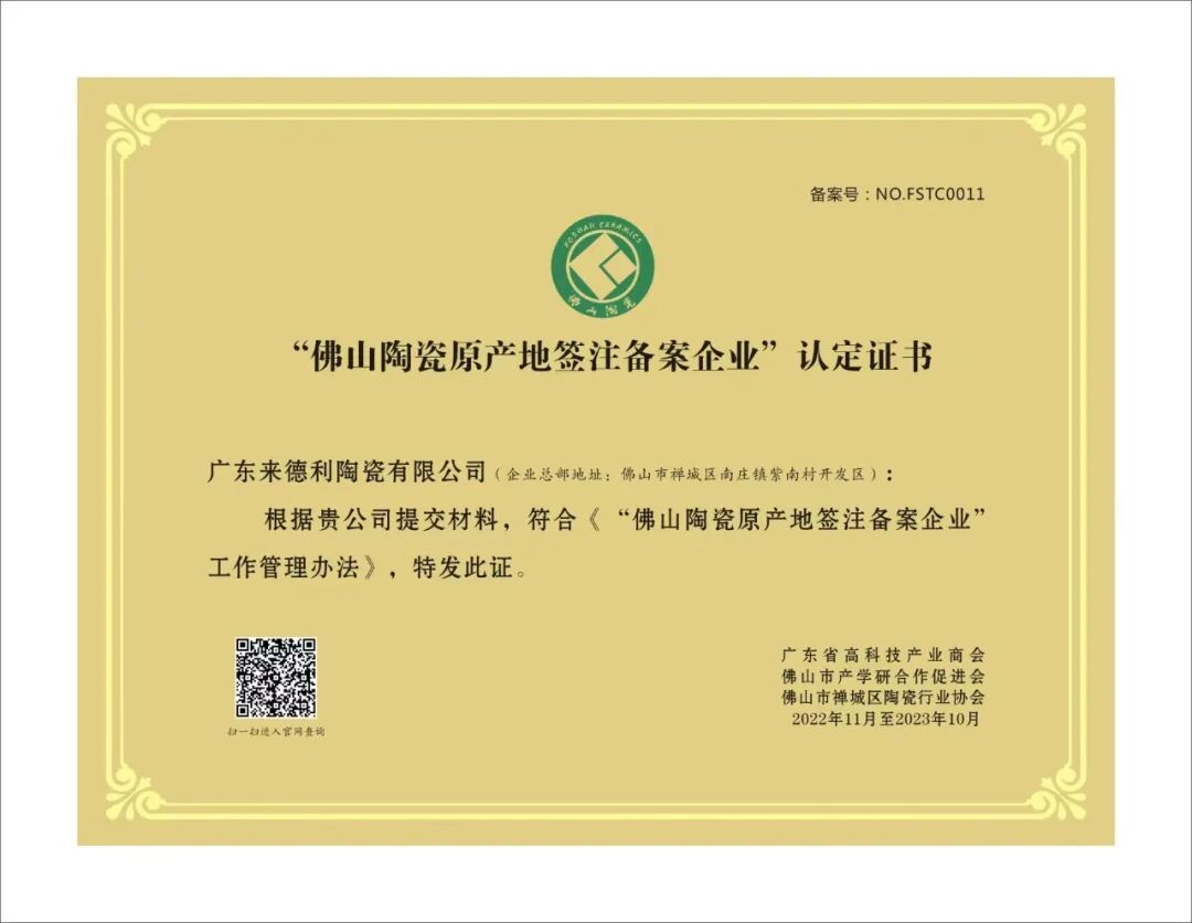 这一严苛标准,让品牌连续6年蝉联 “陶瓷一线品牌”,并获“中国绿色建材产品认证”、“佛山陶瓷原产地签注”等权威背书,夯实“潮榜样”的行业公信力。